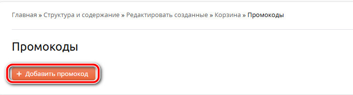 Чтобы добавить промокод, перейдите в раздел "Промокоды" и нажмите по ссылке "Добавить промокод".
