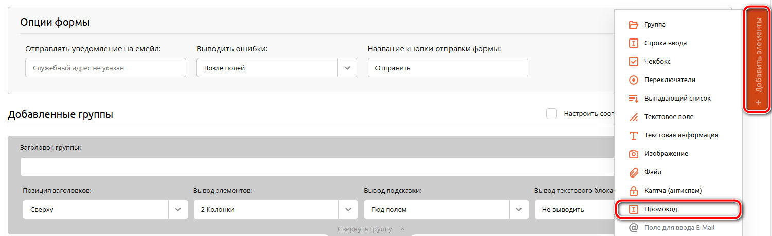Настройка Промокодов