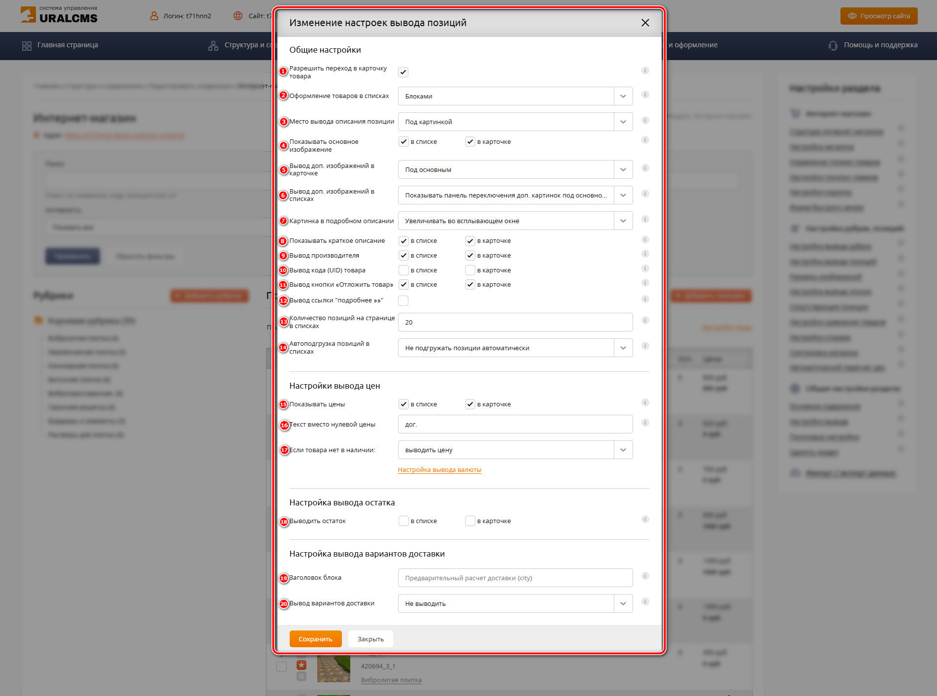 Настройка вывода позиций в разделе «Интернет-магазин»